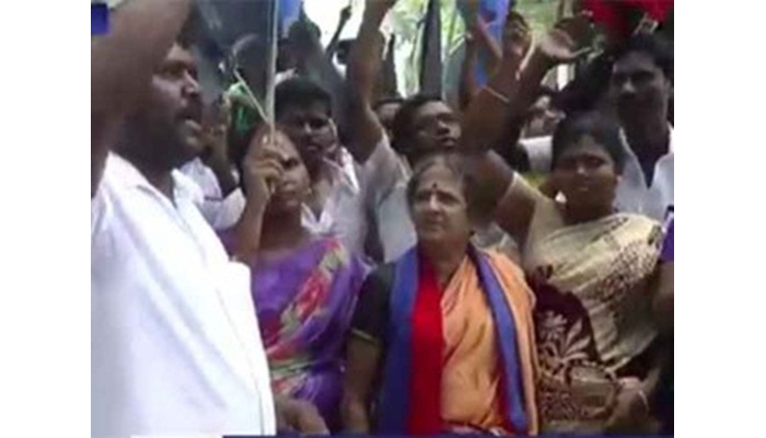 அதிமுக பெண் எம்எல்ஏ-வுக்கு கறுப்புக் கொடி காட்டி மக்கள் எதிர்ப்பு