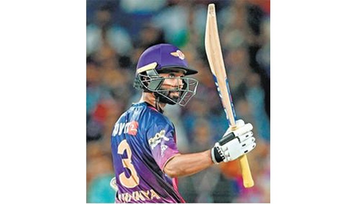 அசோக் திண்டா வீசிய கடைசி ஓவரில் ஹர்திக் பாண்டியா 4 சிக்ஸர்கள், ஒரு பவுண்டரி உட்பட 30 ரன்கள் விளாசி மிரட்டினார். அவர் 15 பந்துகளில் 35 ரன்கள் எடுத்து கடைசி வரை ஆட்டமிழக்காமல் இருந்தார்.