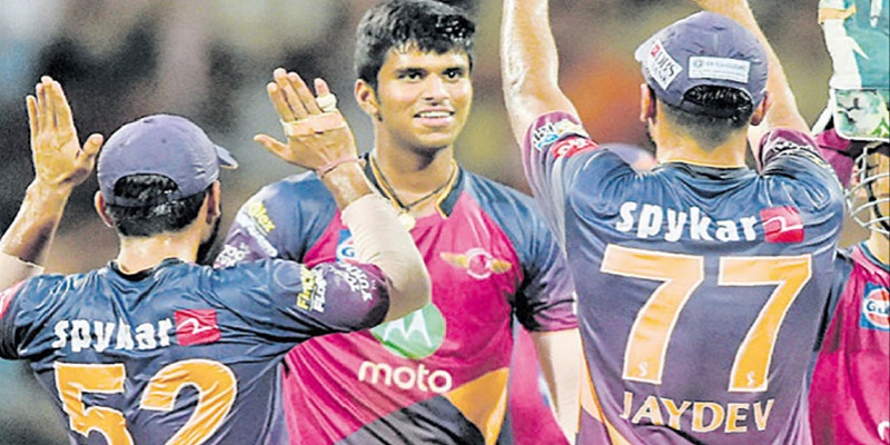 முதலில் ஆடிய புனே 1.5 ஓவர்களில் 9 ரன்னுக்கு 2 விக்கெட்டுகளை இழந்து தடுமாறியது. தொடக்க ஆட்டக்காரர் திரிபாதி ரன் எதுவும் எடுக்காமலும், கேப்டன் ஸ்டீவன் சுமித் 1 ரன்னிலும் அடுத்தடுத்து ஆட்டம் இழந்தனர். ரஹானே (56 ரன்கள், 43 பந்துகளில் 5 பவுண்டரி, ஒரு சிக்சருடன்), மனோஜ்திவாரி (58 ரன்கள், 48 பந்துகளில் 4 பவுண்டரி, 2 சிக்சருடன்) அரைசதம் அடித்து அணியை சரிவில் இருந்து மீட்டனர்.